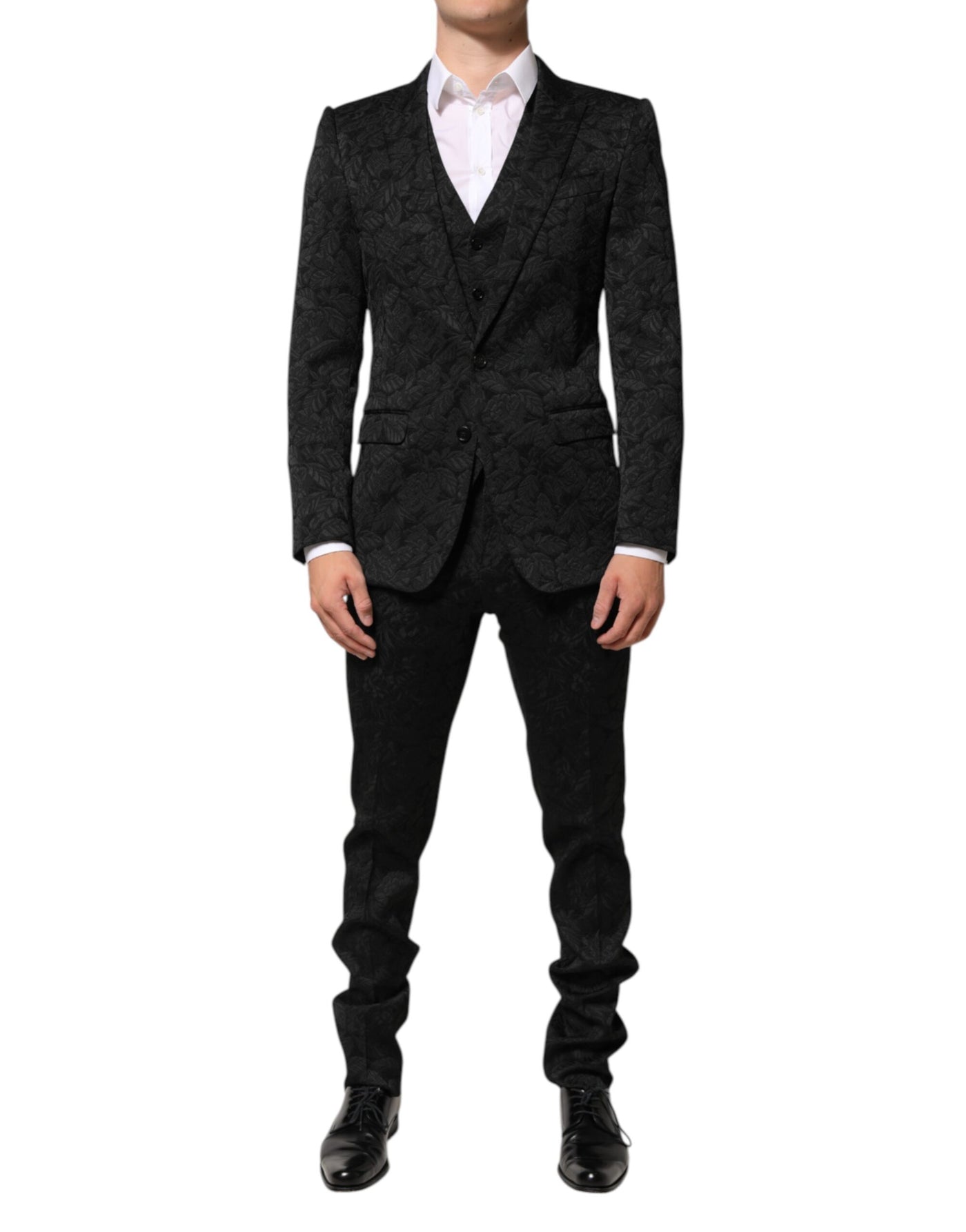 Dolce & Gabbana Black 3 Piece Brocade Jacquard Suit MARTINI