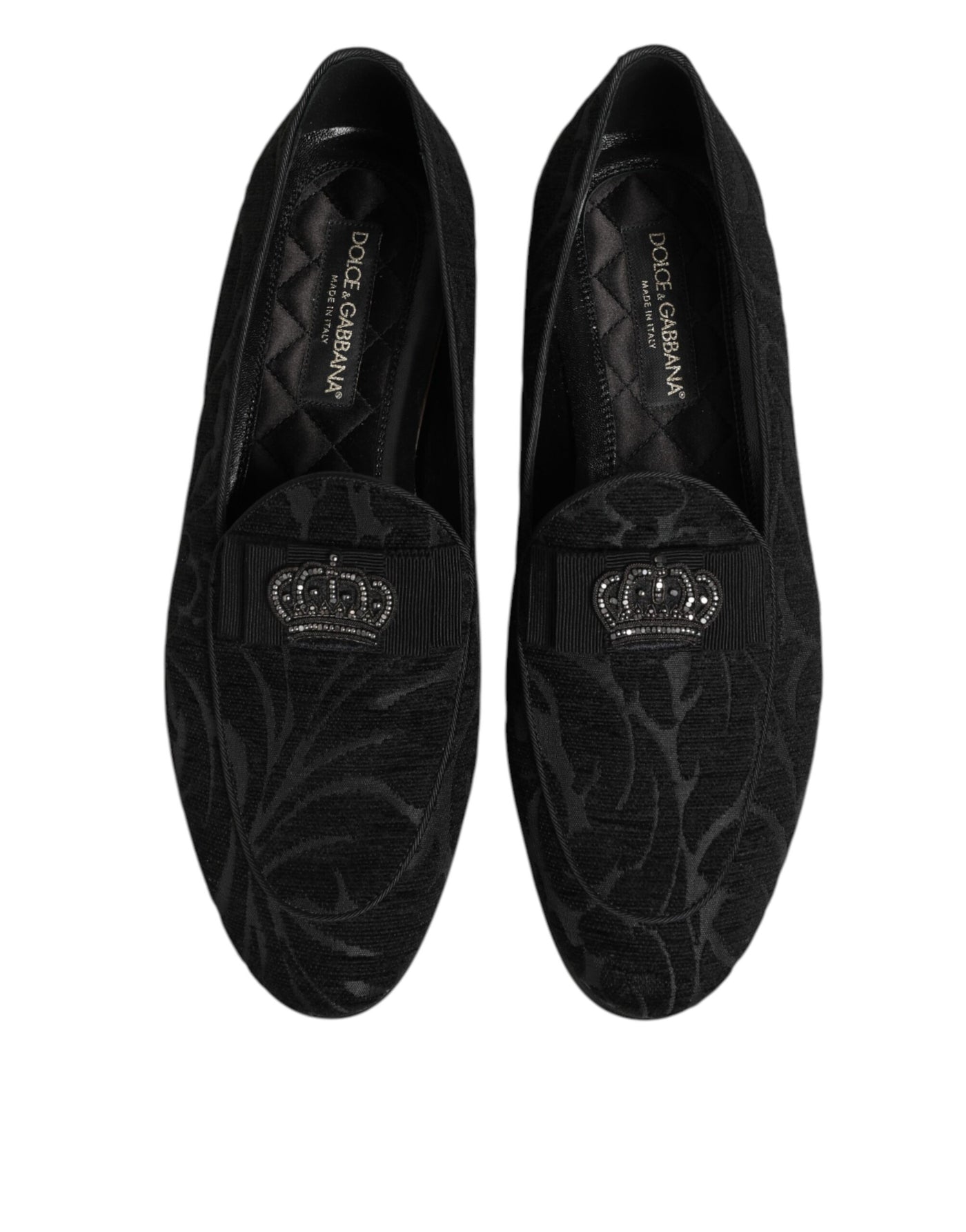 Dolce & Gabbana Black Brocade Crown Loafers Dress Shoes