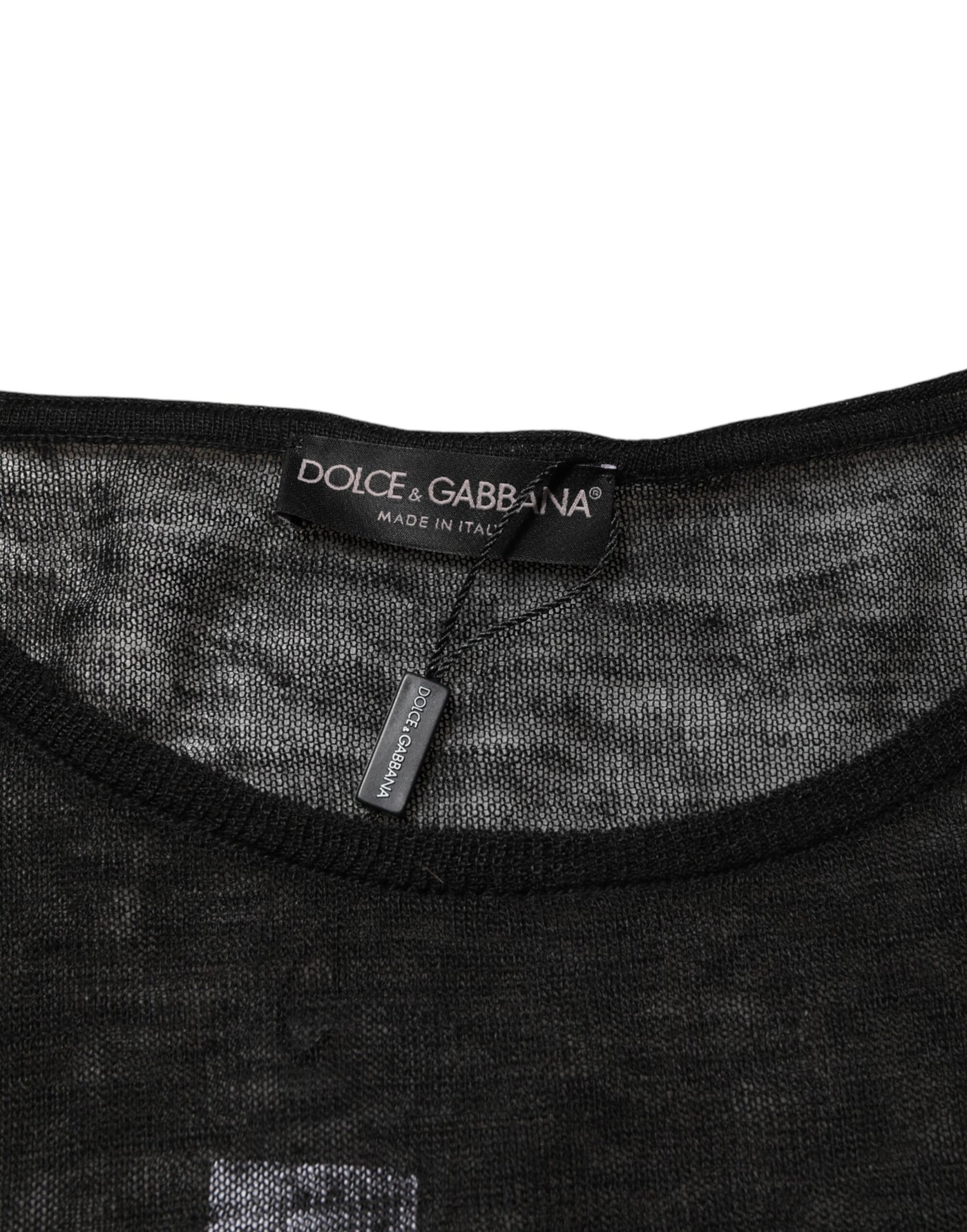 Dolce & Gabbana Black Linen Mesh Tattered Longsleeves T-shirt - IT48 | M