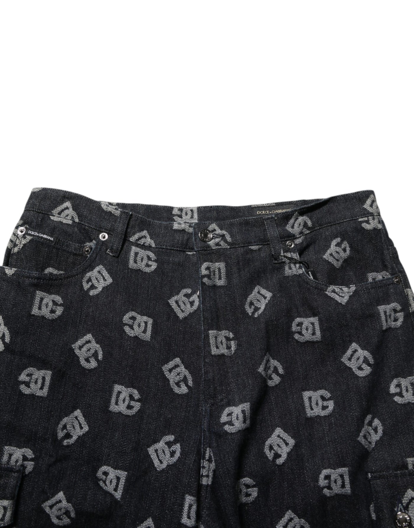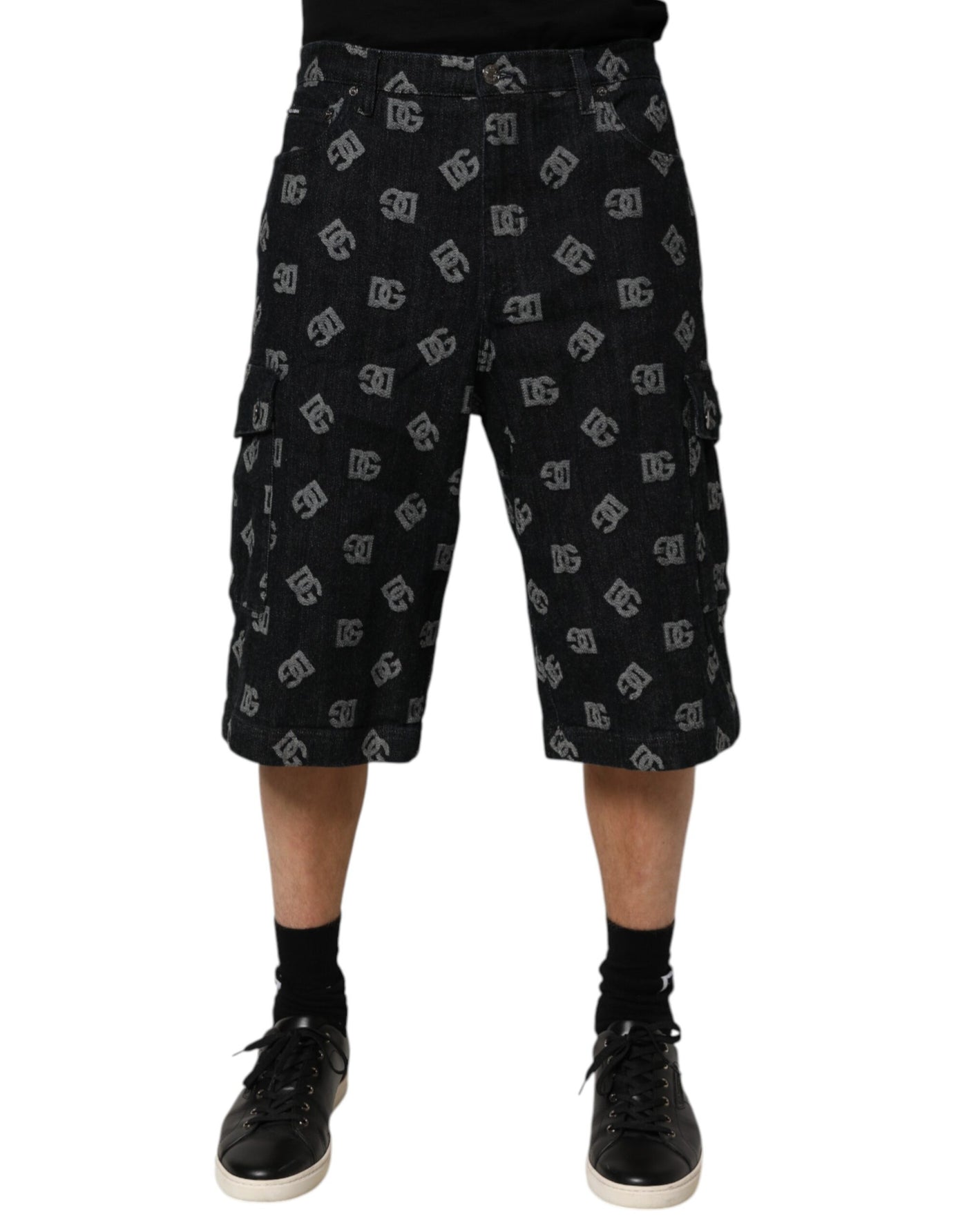 Dolce & Gabbana Black Monogram Denim Cargo Men Bermuda Short - IT48 | M