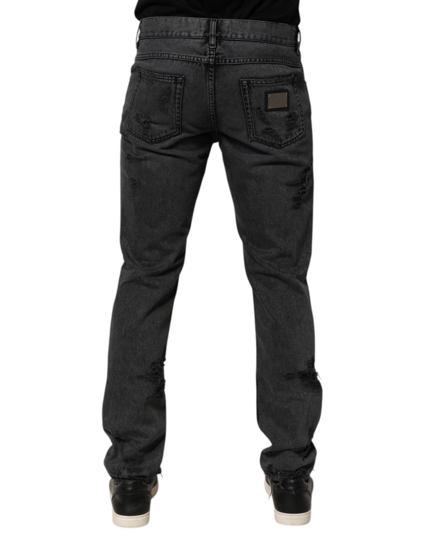 Dolce & Gabbana Black Tattered Skinny Cotton Men Denim Jeans - IT48 | M