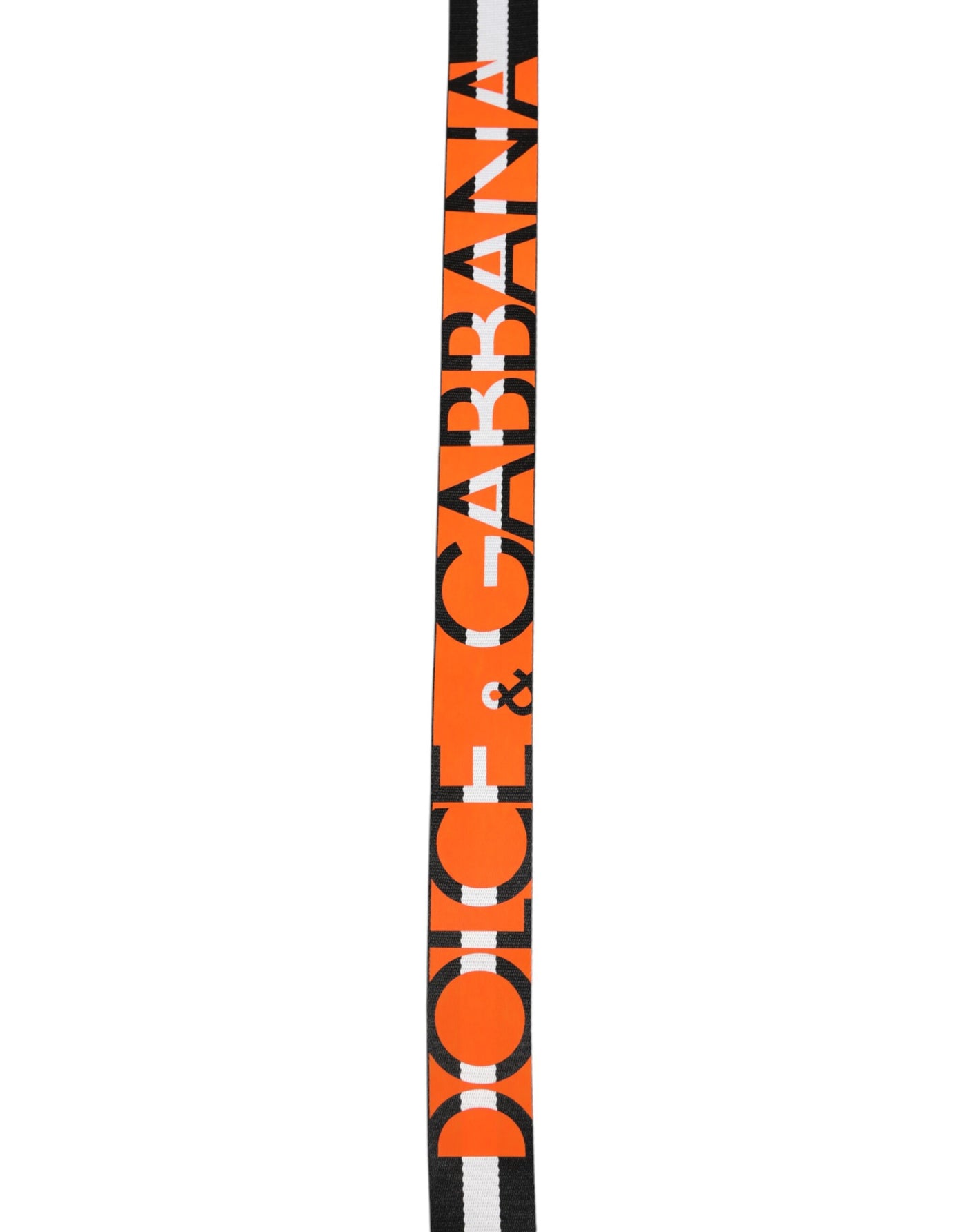 Dolce & Gabbana Black White Striped Logo Metal Buckle Belt - 100 cm / 40 Inches
