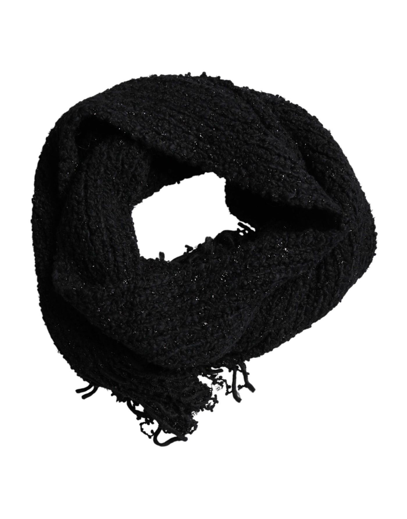 Dolce & Gabbana Black Wool Fringes Neck Wrap Foulard Scarf