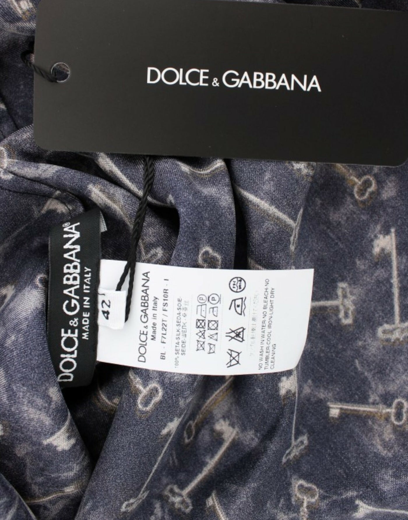 Dolce & Gabbana Blue gold key print silk blouse - IT42|M
