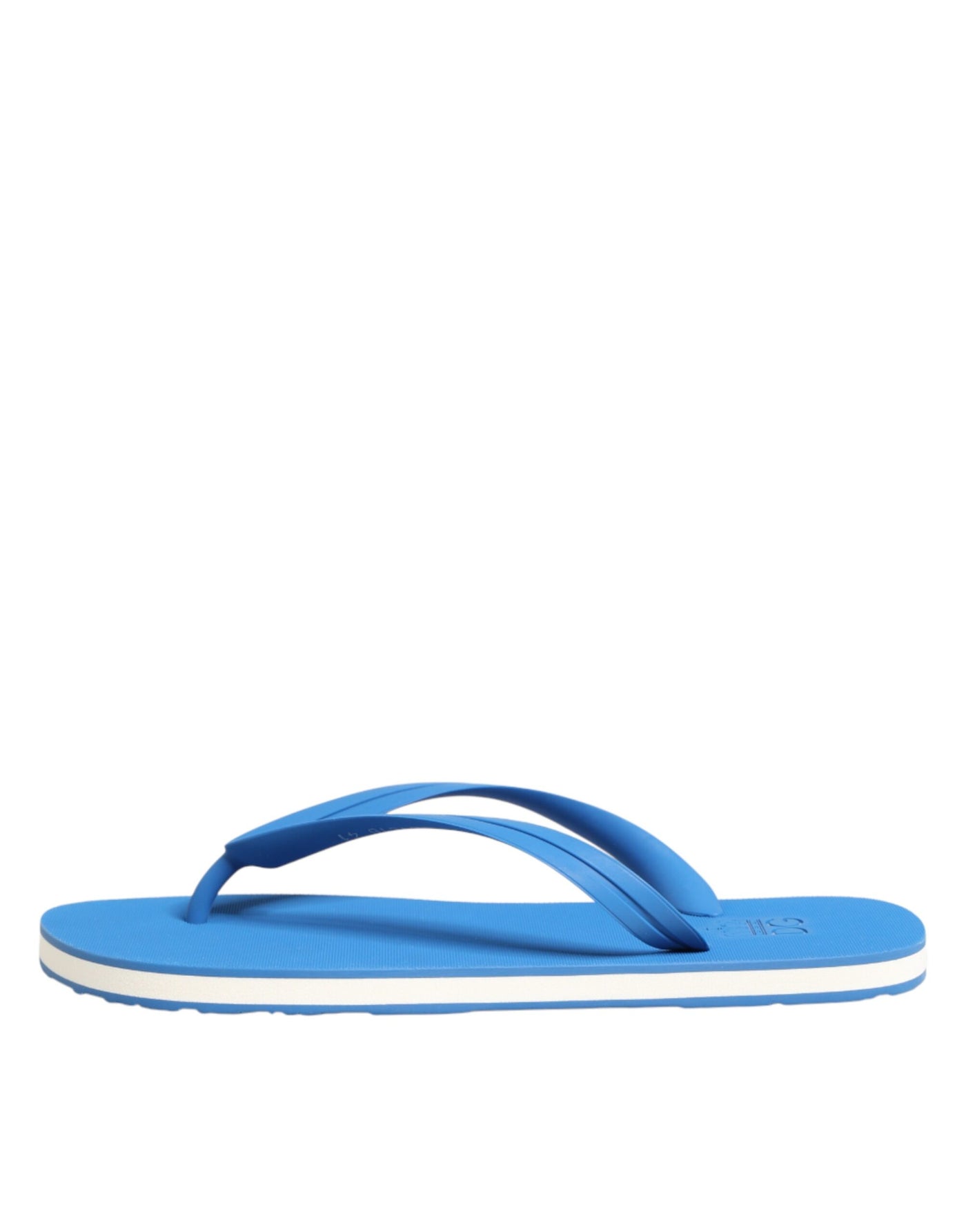 Dolce & Gabbana Blue White Logo Beachwear Flats Slipper Shoes