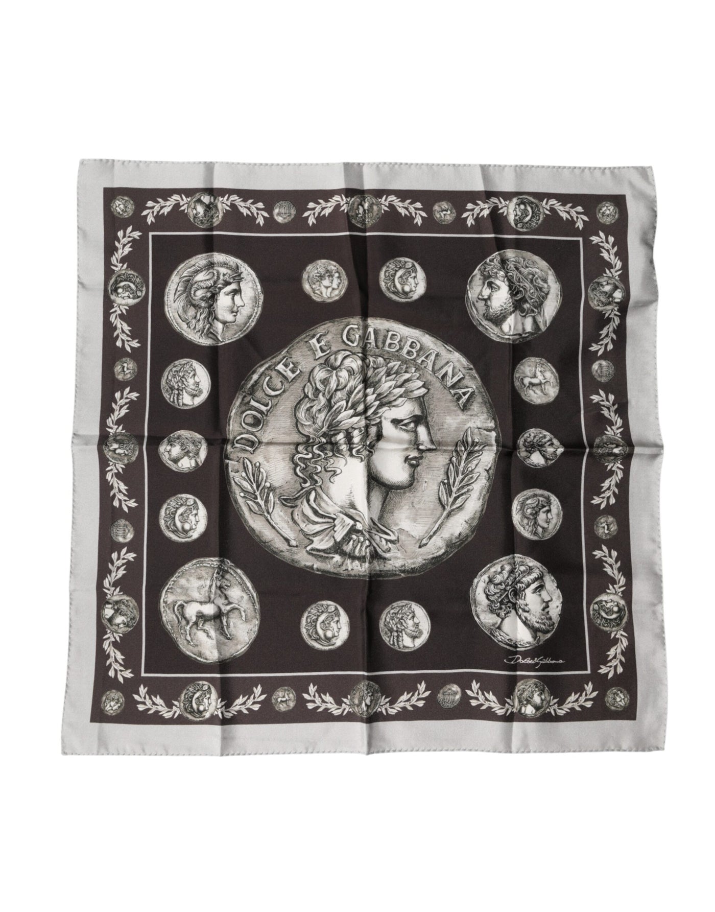 Dolce & Gabbana Brown Roman Coin Print Silk Square Foulard Scarf