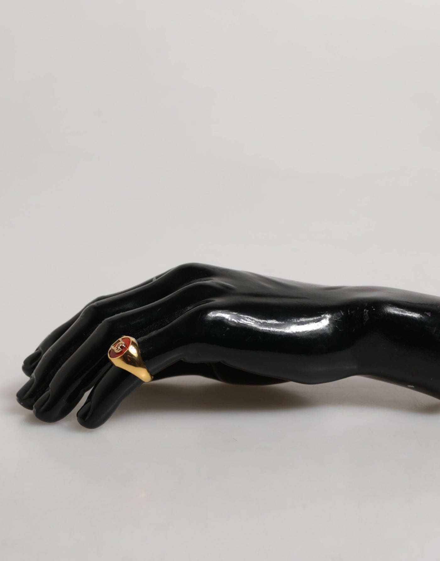 Dolce & Gabbana Gold Tone Real Brass Red DG Logo Men Ring - EU58 | US9