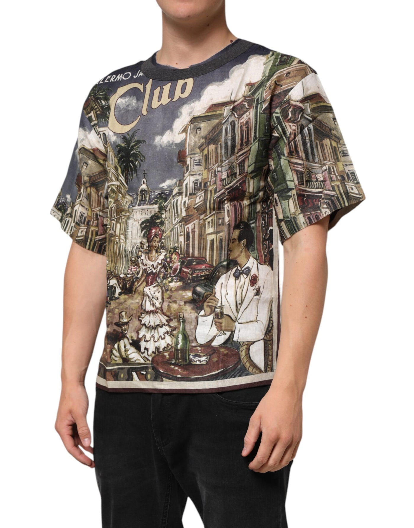 Dolce & Gabbana Palermo Jazz Club Linen Crew Neck Men T-shirt