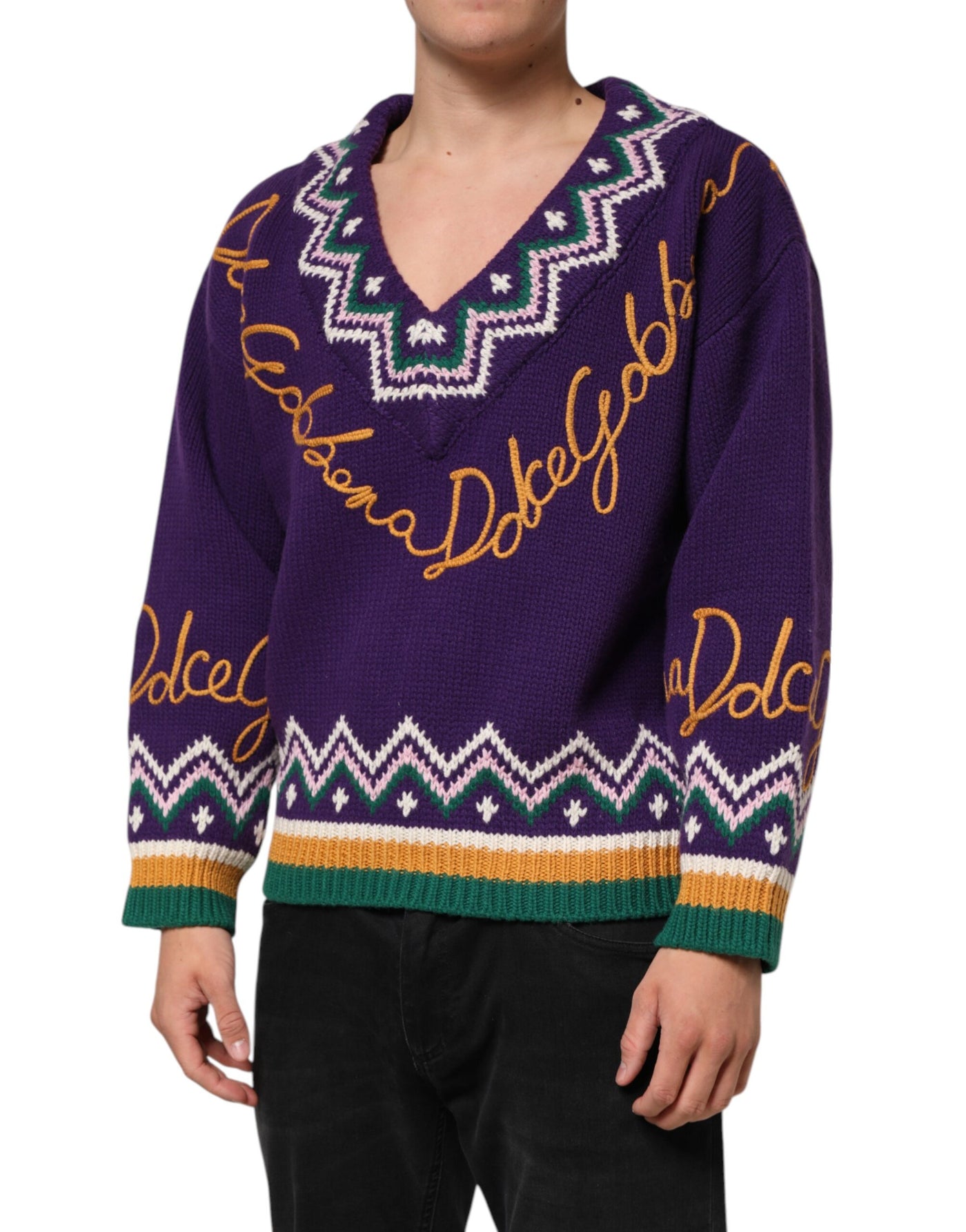 Dolce & Gabbana Purple Wool DG Logo Men Knit Pullover Sweater