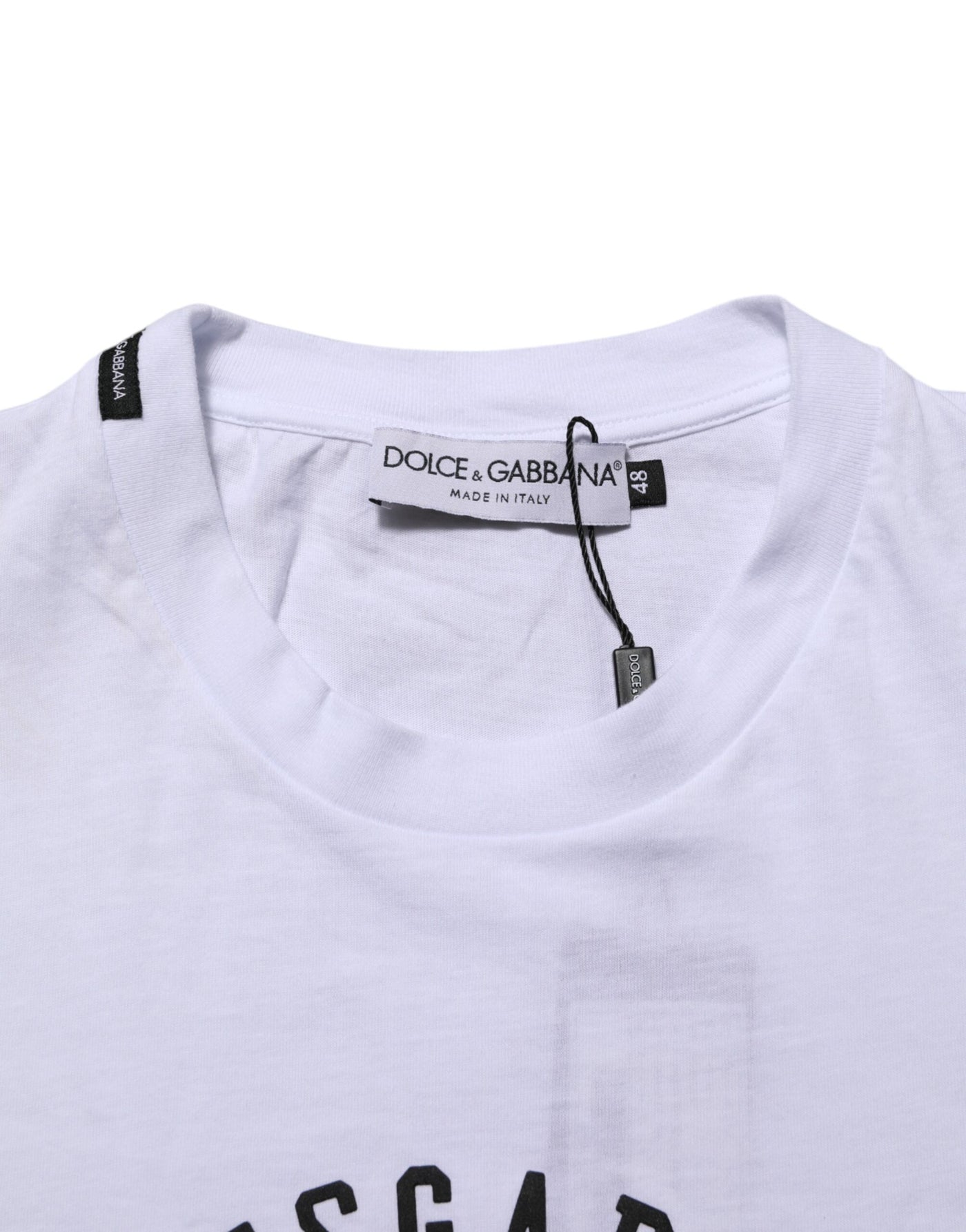 Dolce & Gabbana White Cotton Logo Print Crew Neck T-shirt