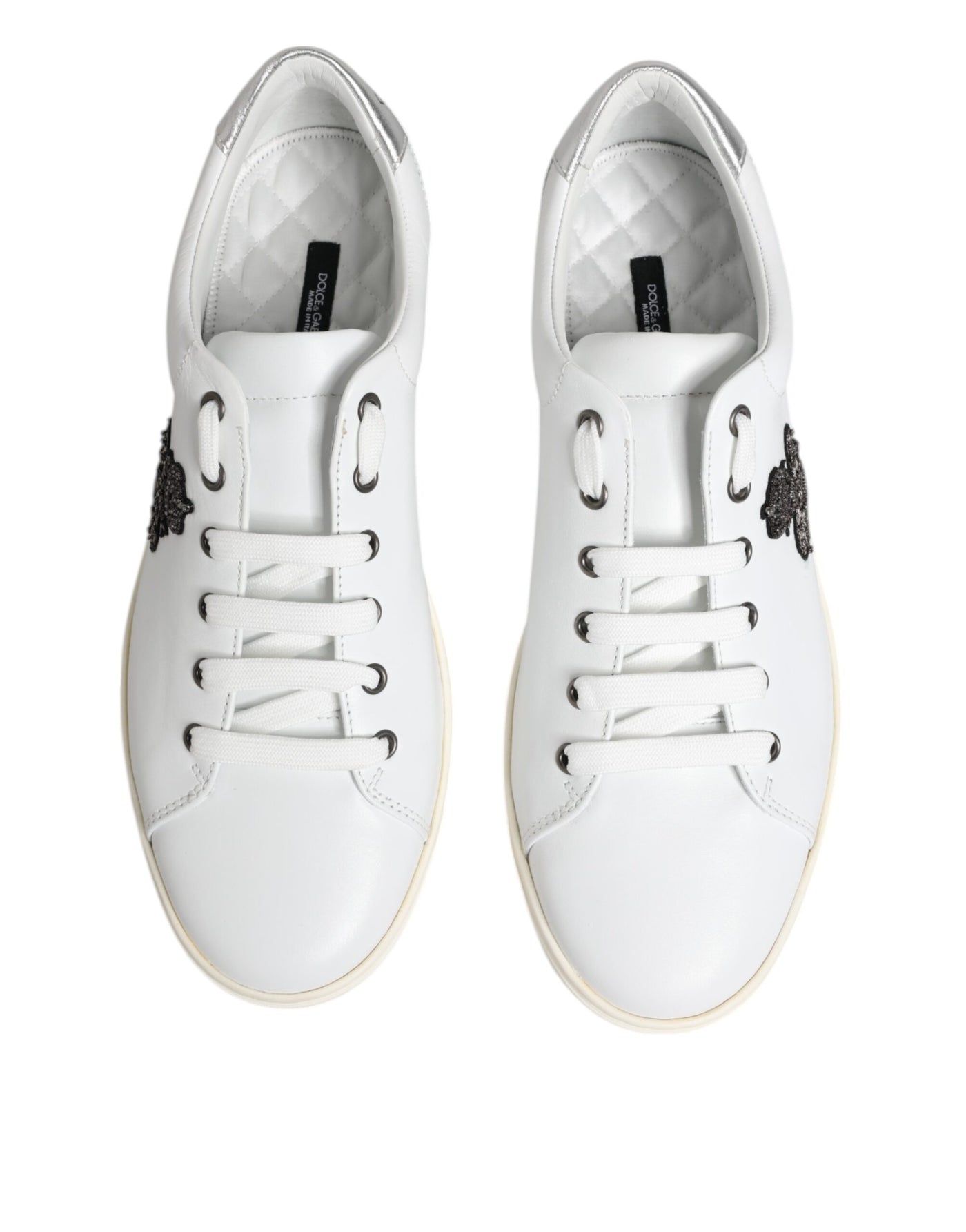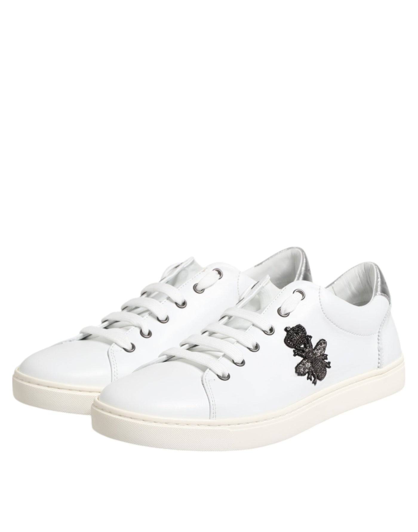 Dolce & Gabbana White Crown Bee Leather Low Top Sneakers Shoes