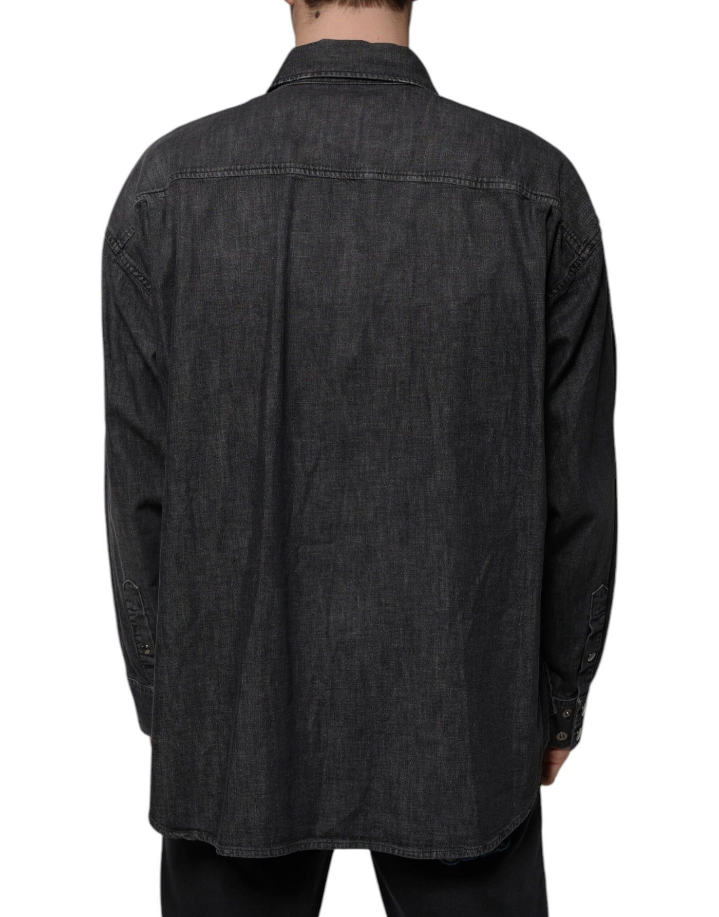 Dolce & Gabbana Black Logo Cotton Button Down Denim Shirt