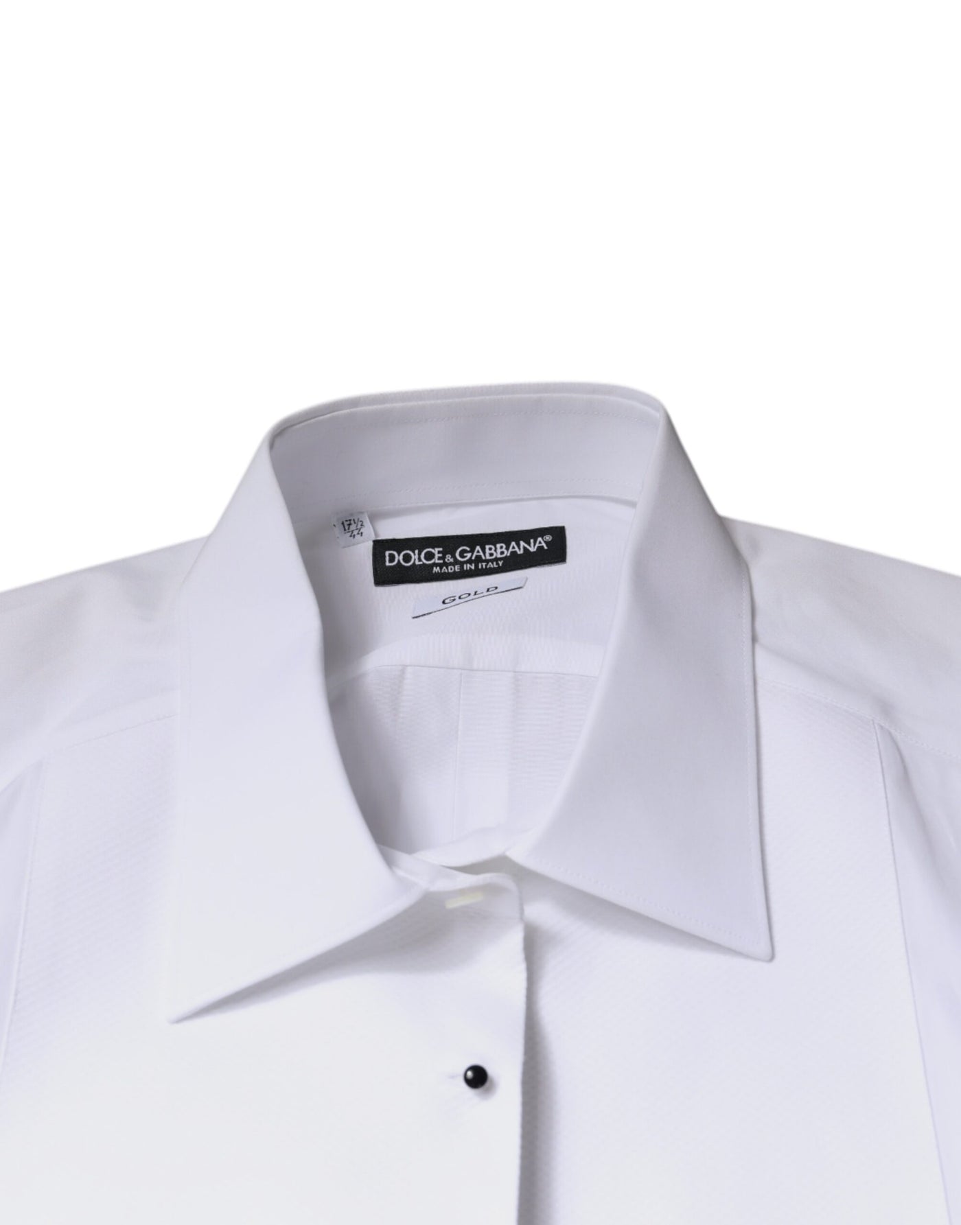 Dolce & Gabbana White Bib Cotton Poplin GOLD Formal Shirt
