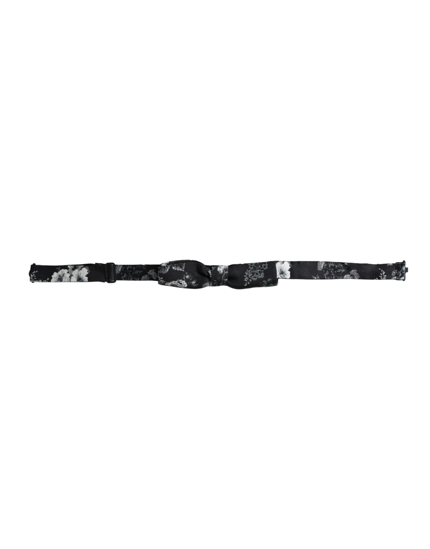 Dolce & Gabbana Black Floral Silk Adjustable Neck Men Bow Tie