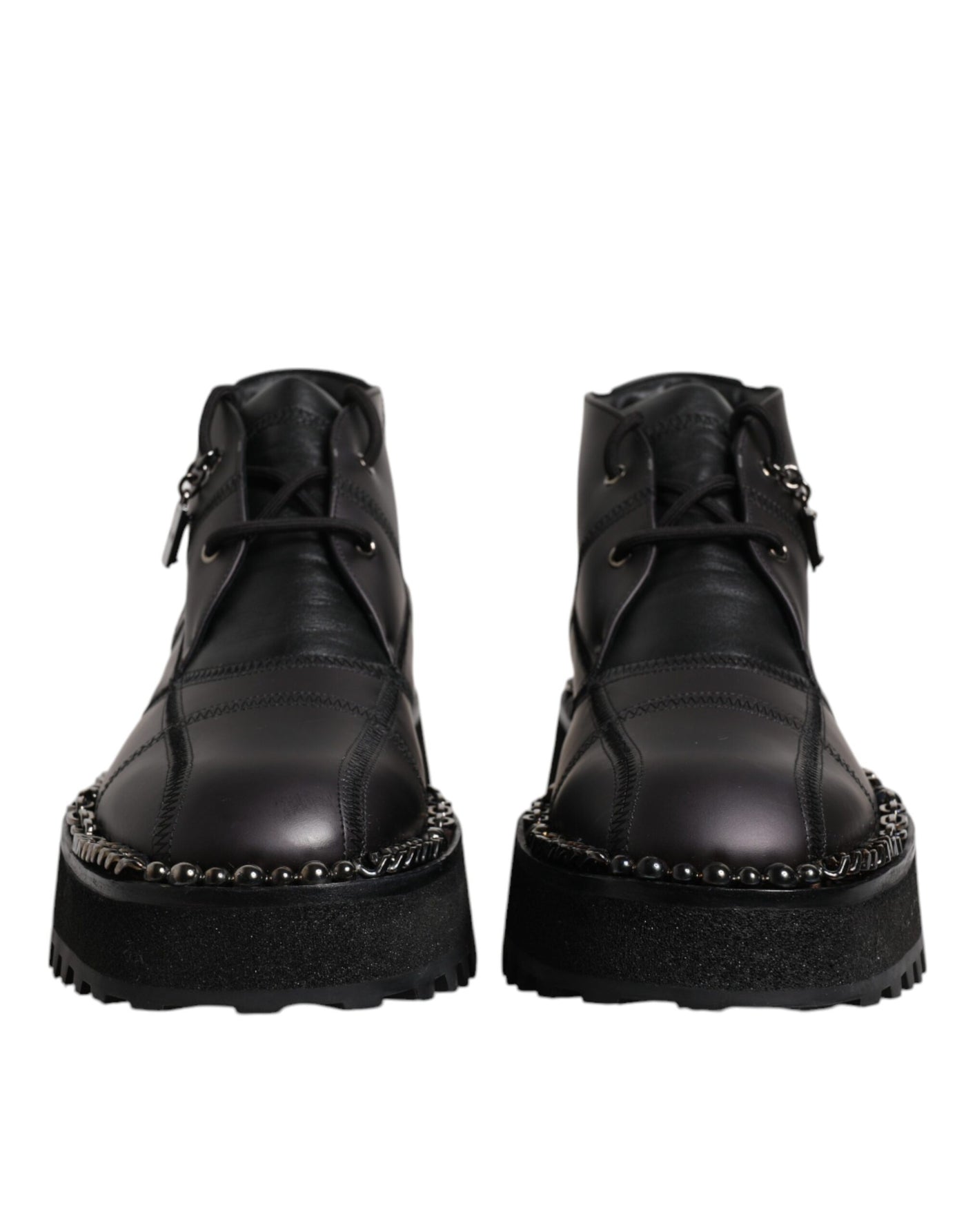 Dolce & Gabbana Black Leather Lace Up Ankle Boots Shoes