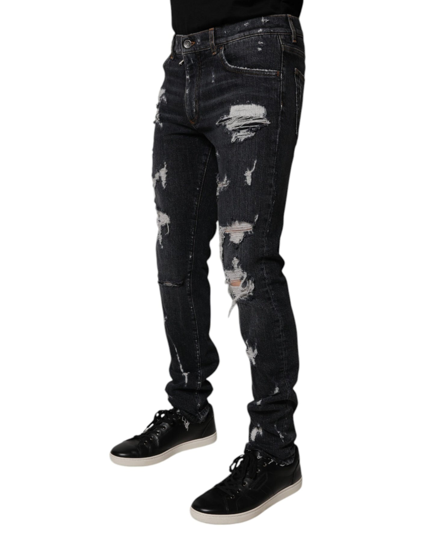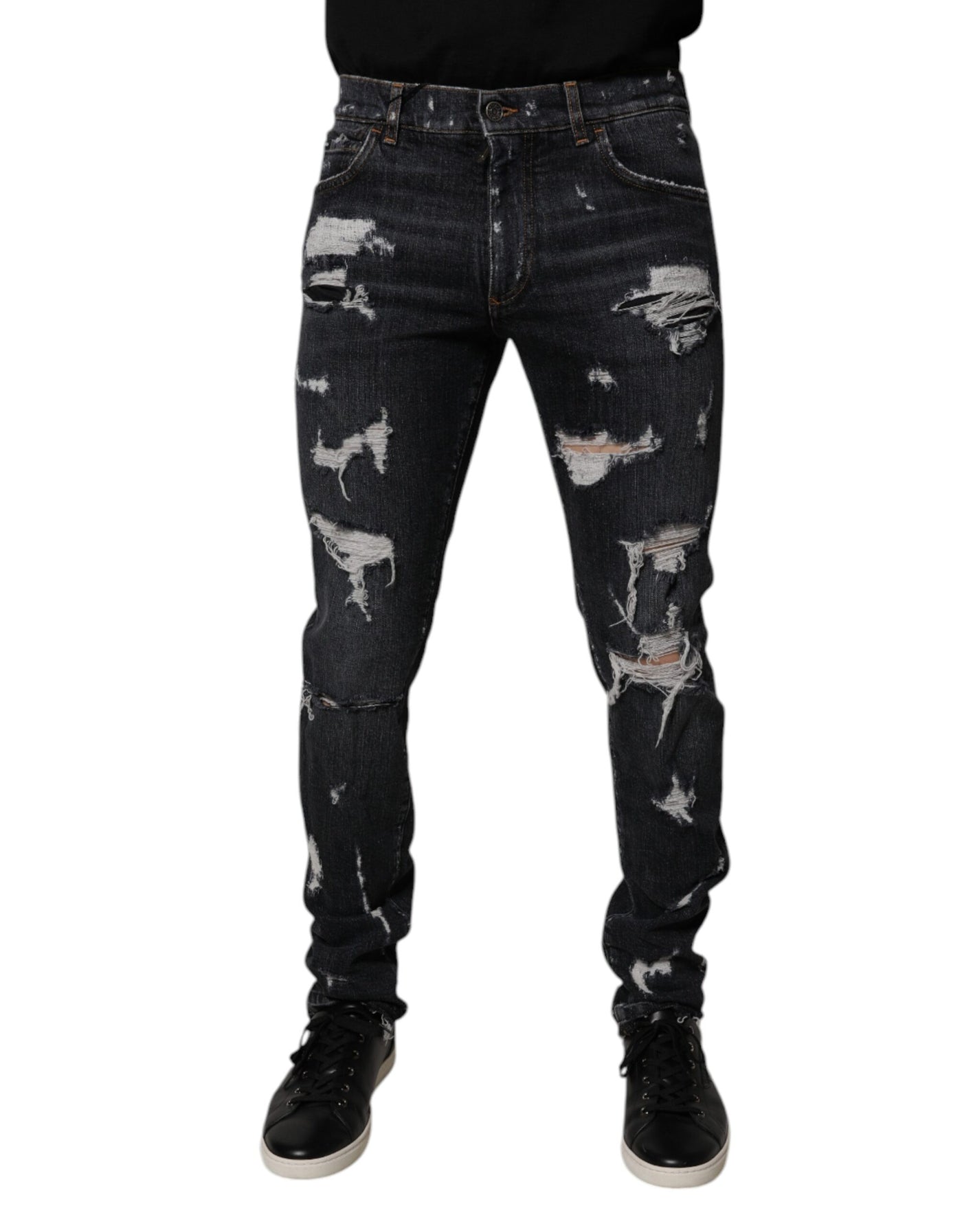 Dolce & Gabbana Black Tattered Cotton Skinny Men Denim Jeans - IT48 | M