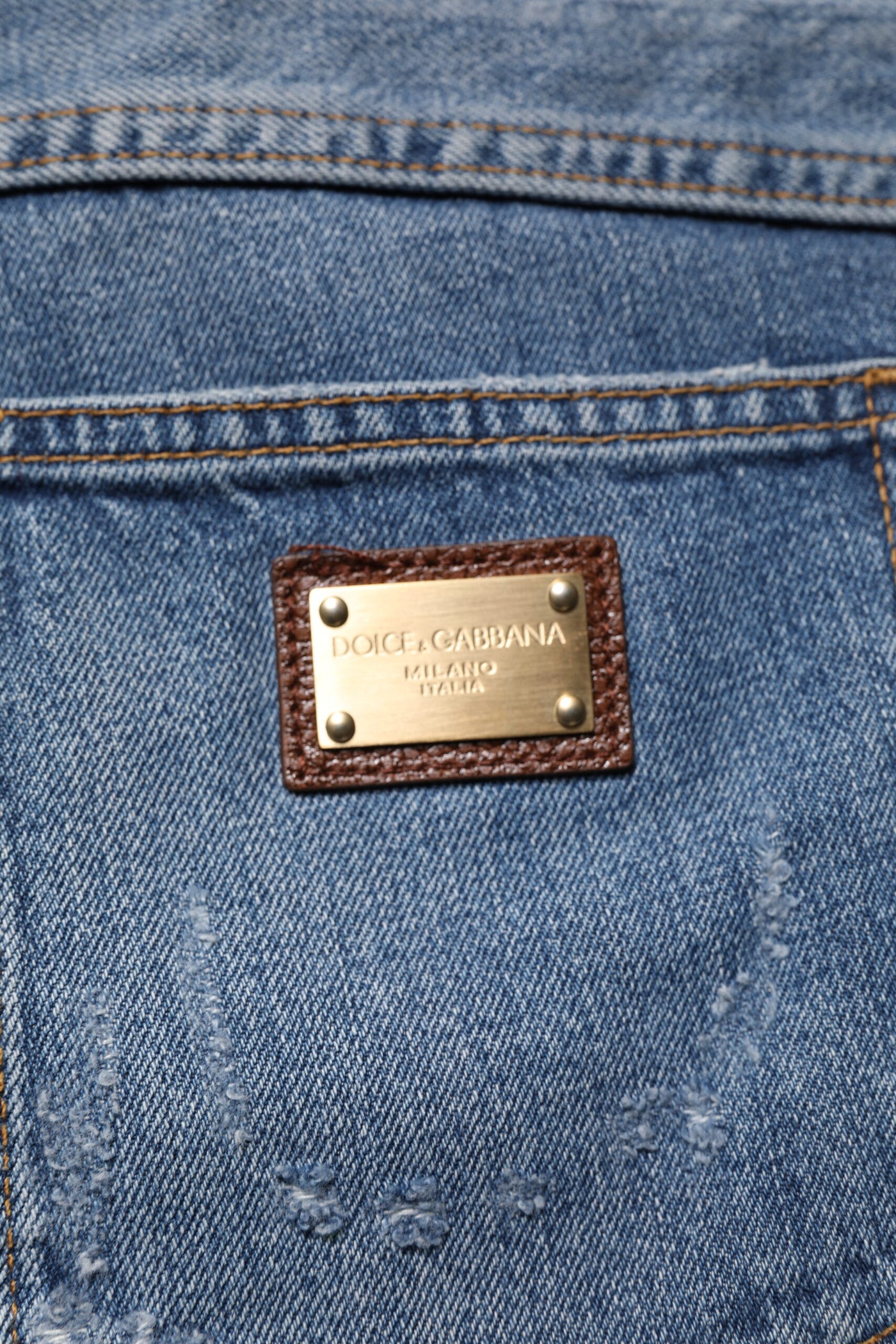 Dolce & Gabbana Blue Tattered Cotton Straight Denim Jeans