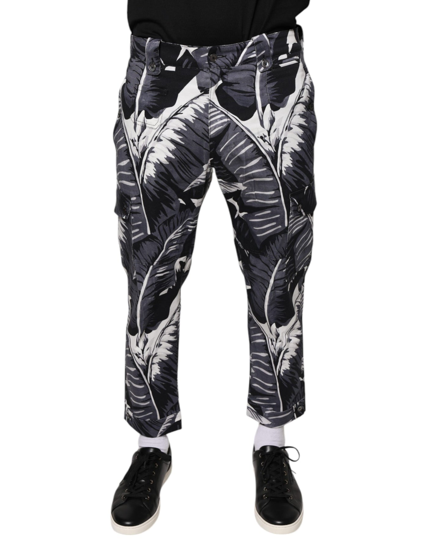 Dolce & Gabbana Gray Banana Leaf Cotton Stretch Capri Pants - IT46 | S