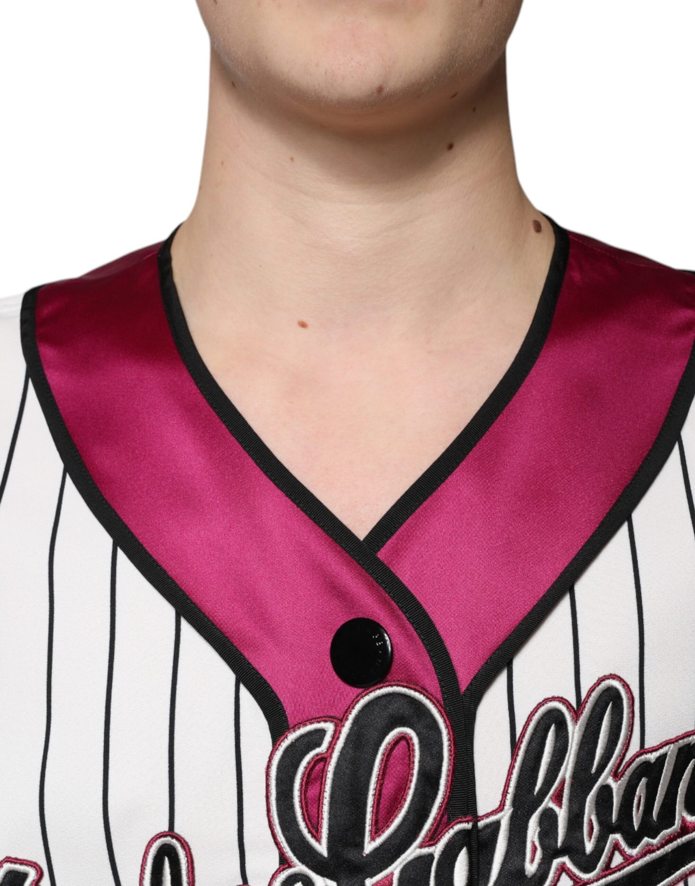 Dolce & Gabbana Multicolor Logo Jersey Button V-neck T-shirt