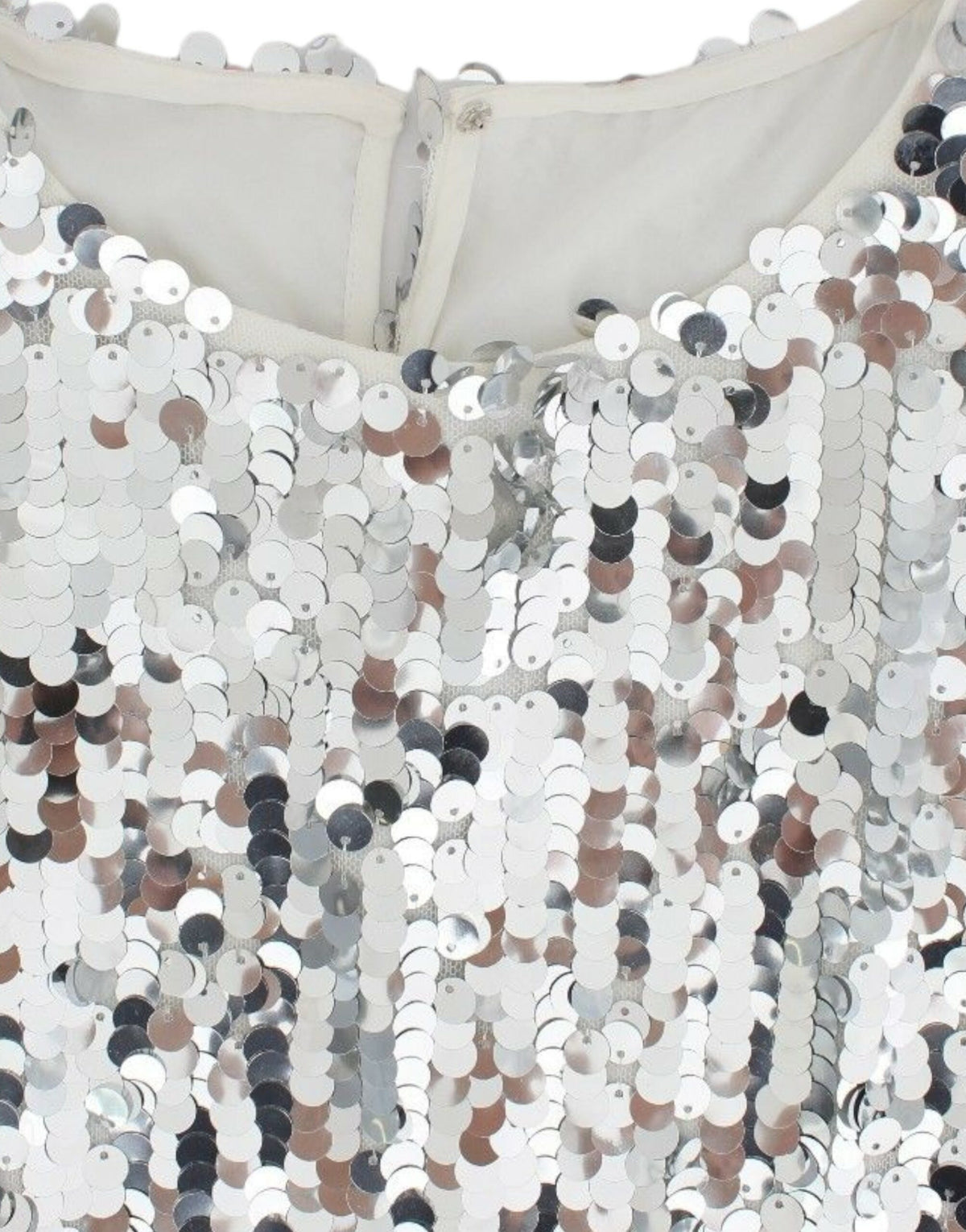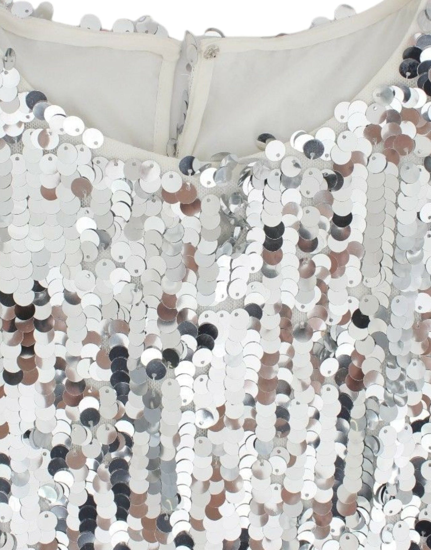Dolce & Gabbana Silver Sequined Crewneck Blouse T-shirt Top - IT42