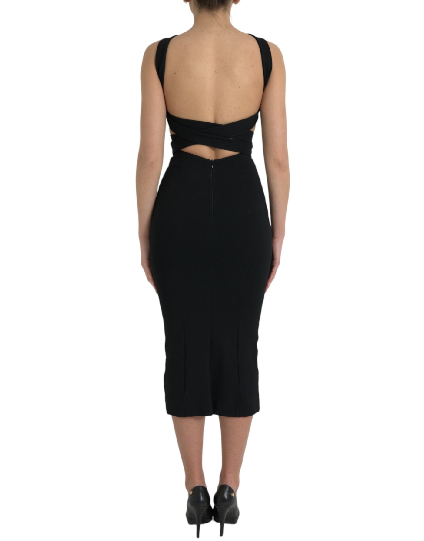 Dolce & Gabbana Black Sheath Halter Sleeveless Midi Dress