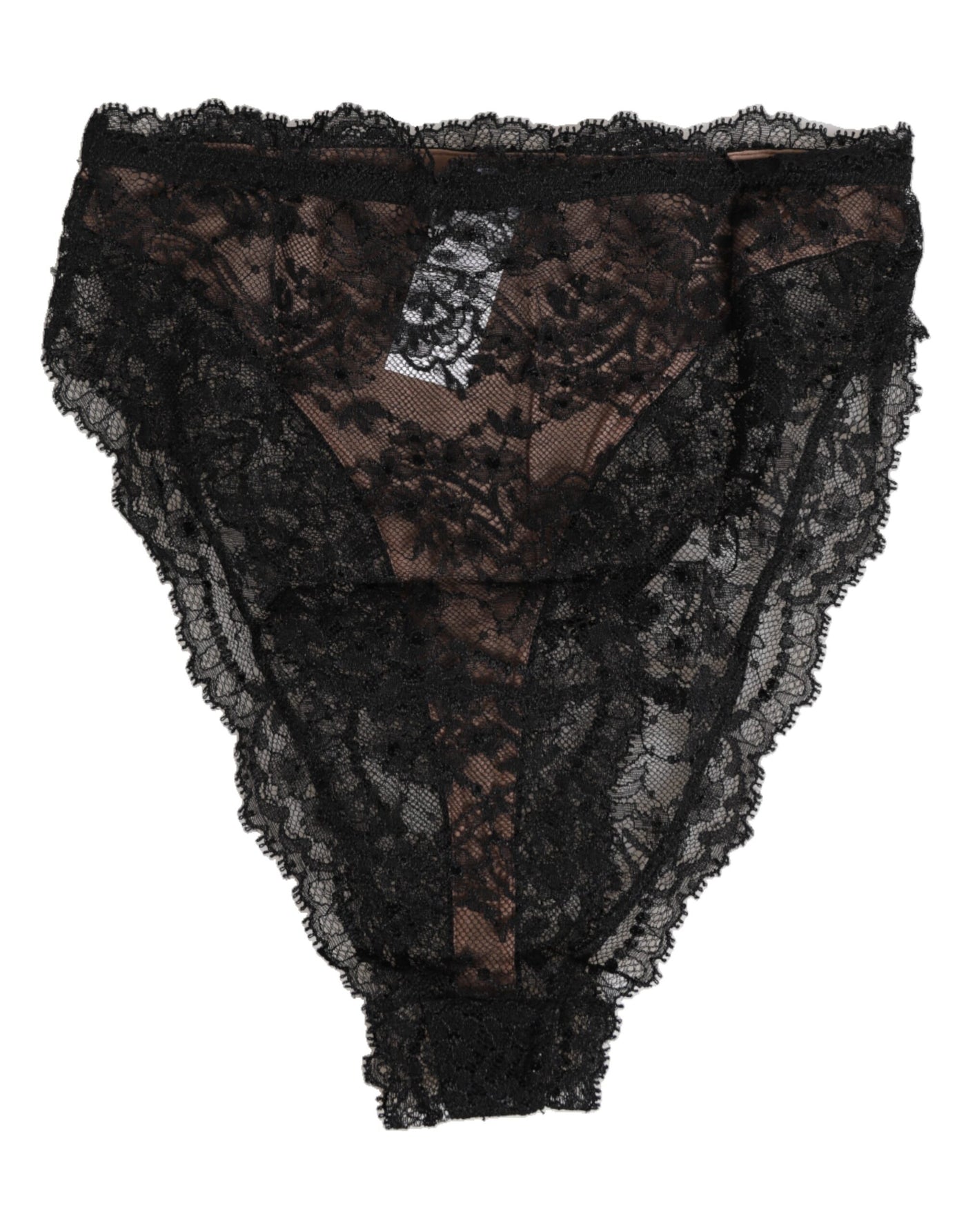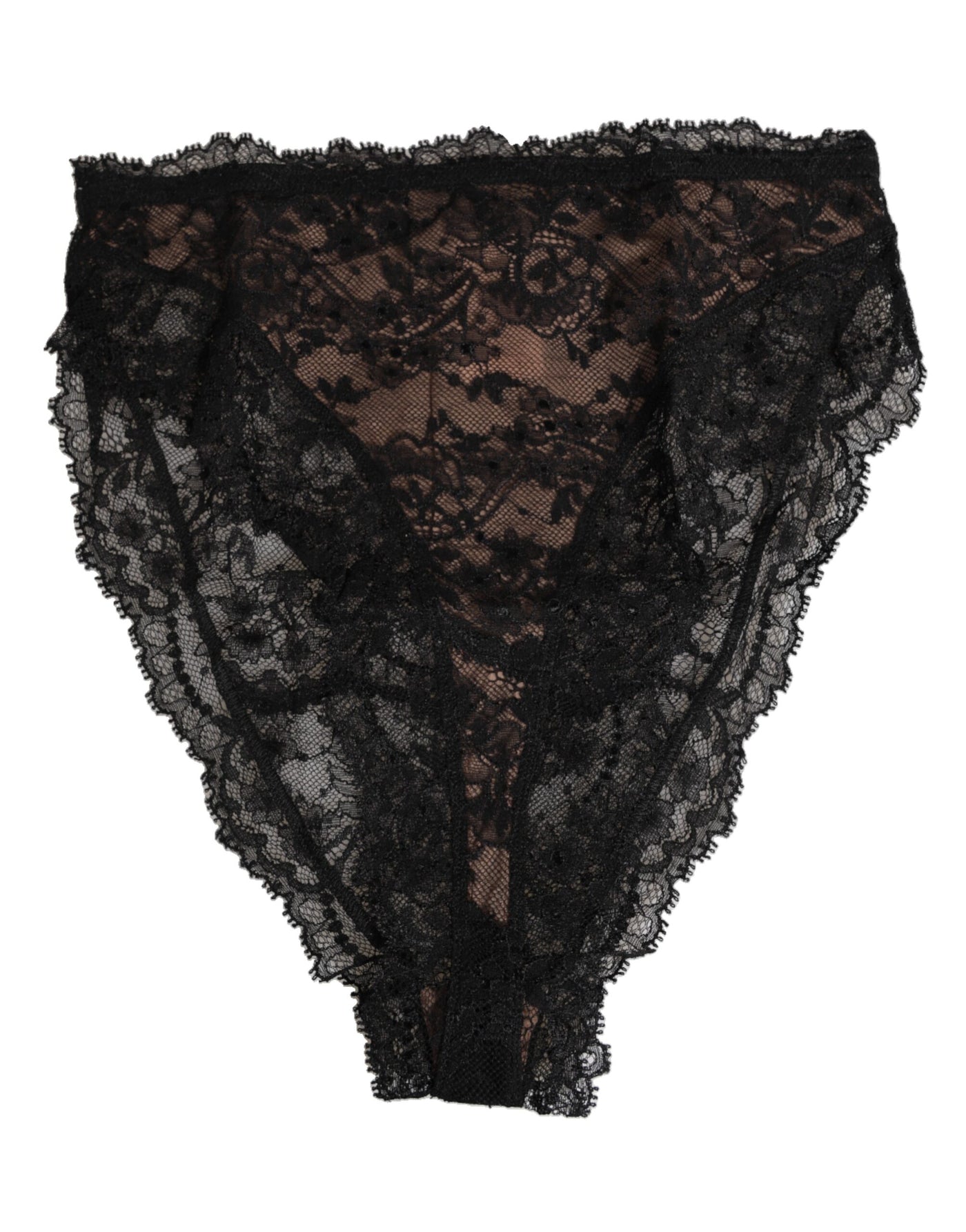 Dolce & Gabbana Black Floral Lace Mesh High Brief Panty Underwear