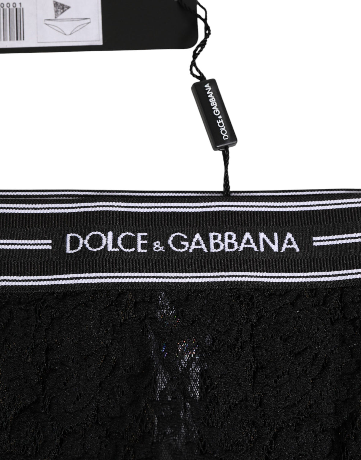 Dolce & Gabbana Black Lace Nylon High Waist Panty Underwear