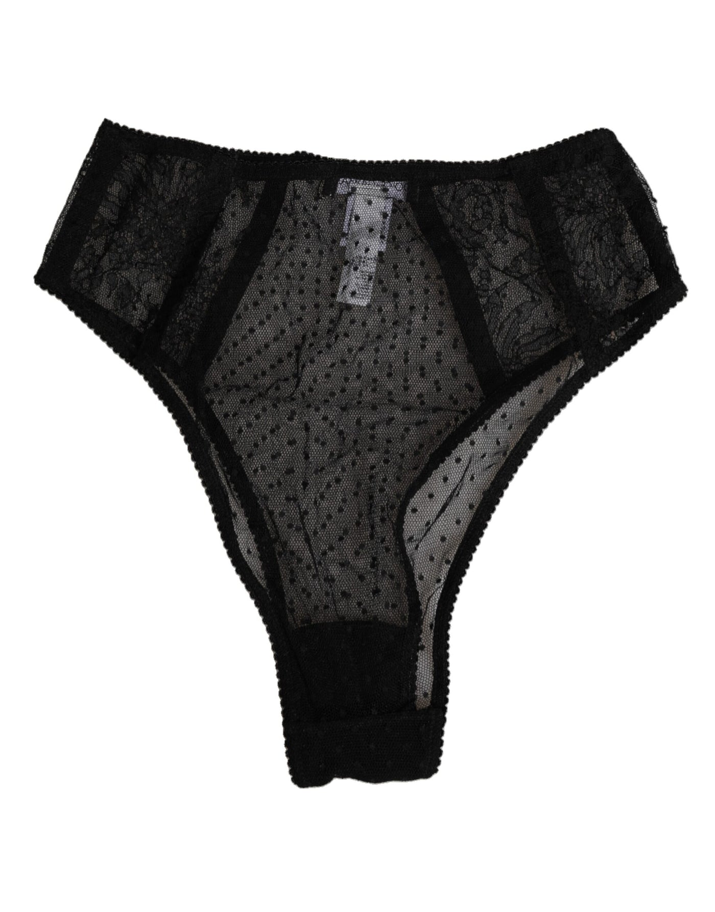Dolce & Gabbana Black Lace Polka Dot Mesh High Waist Underwear