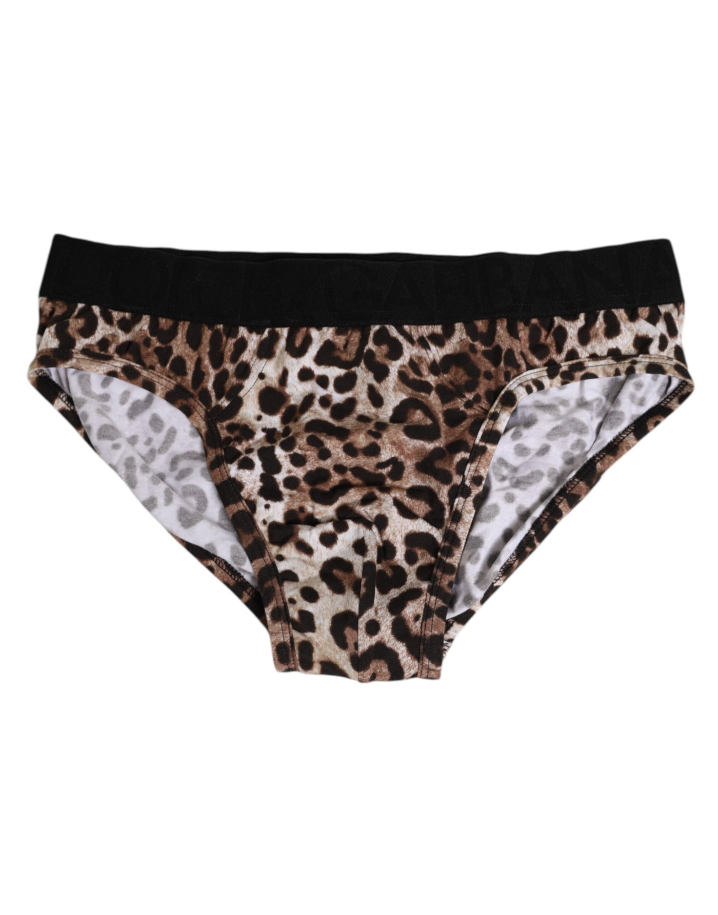Dolce & Gabbana Brown Cotton Leopard Logo Midi Brief Underwear - IT4 | L