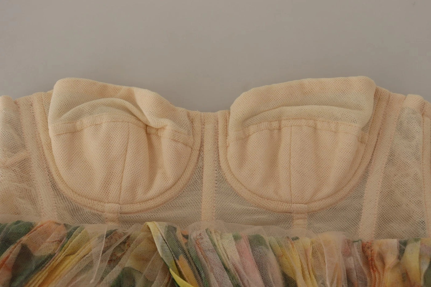 Dolce & Gabbana Yellow Floral Print Pleated Maxi Dress