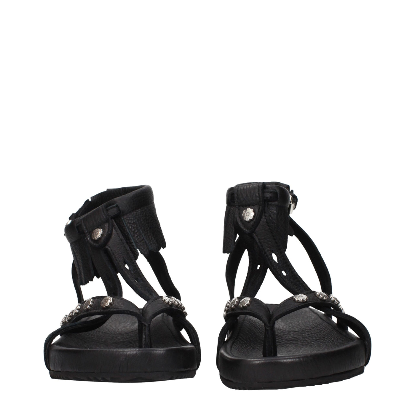 Isabel Marant Black Leather Flat Sandals - EU36/US6