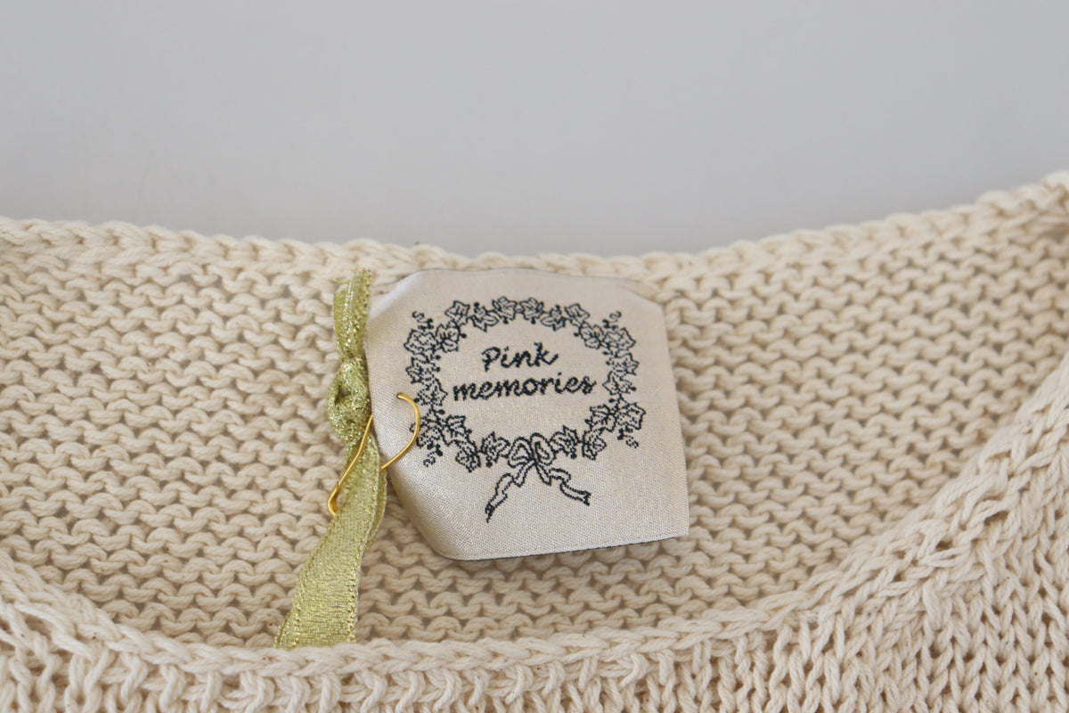 PINK MEMORIES Beige Cotton Blend Sleeveless Round Neck Tank Top - One Size