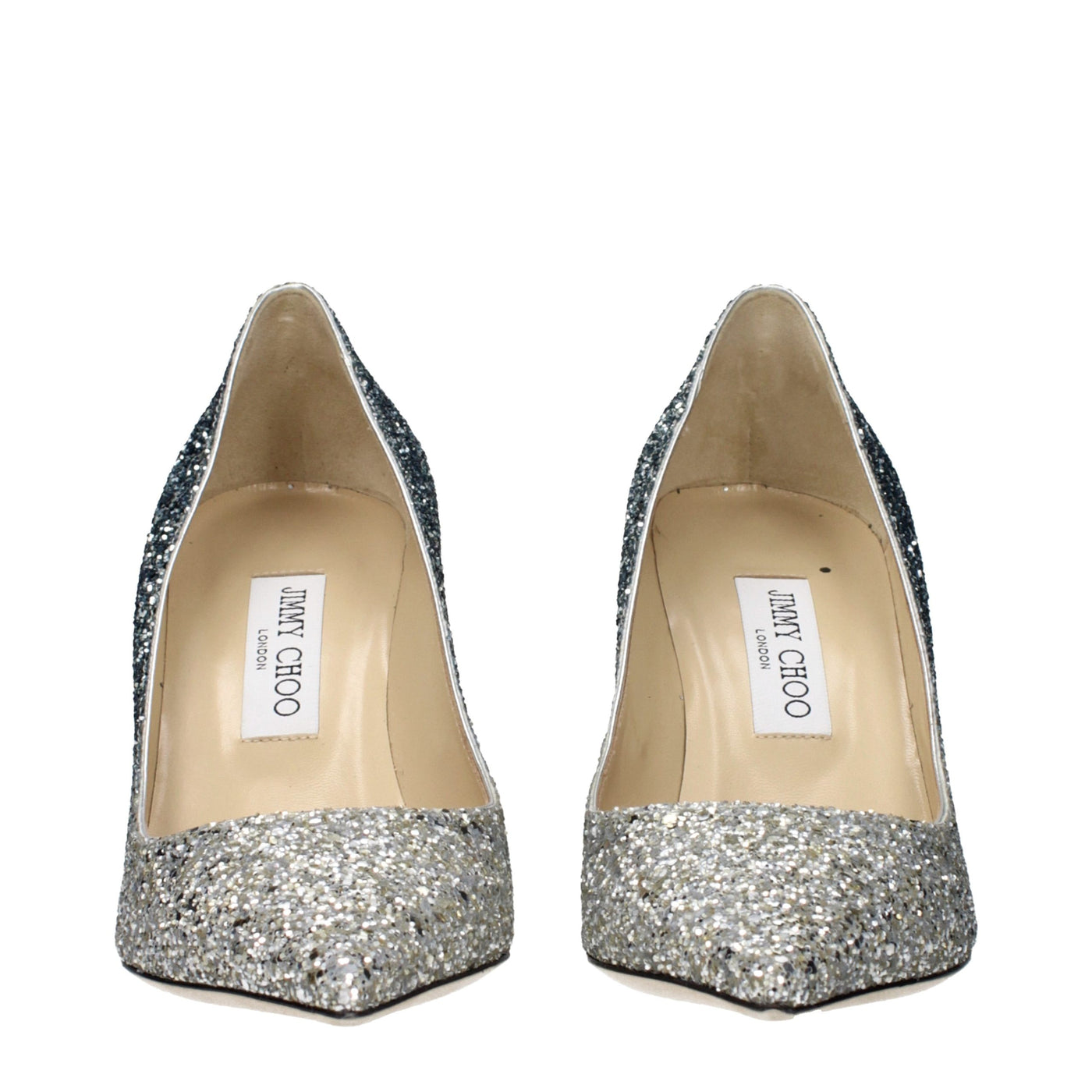 The product with MPN AGNESOCGDSILVERPAVONE and code F85792 glitter in silver is a pumps designed by Jimmy Choo.