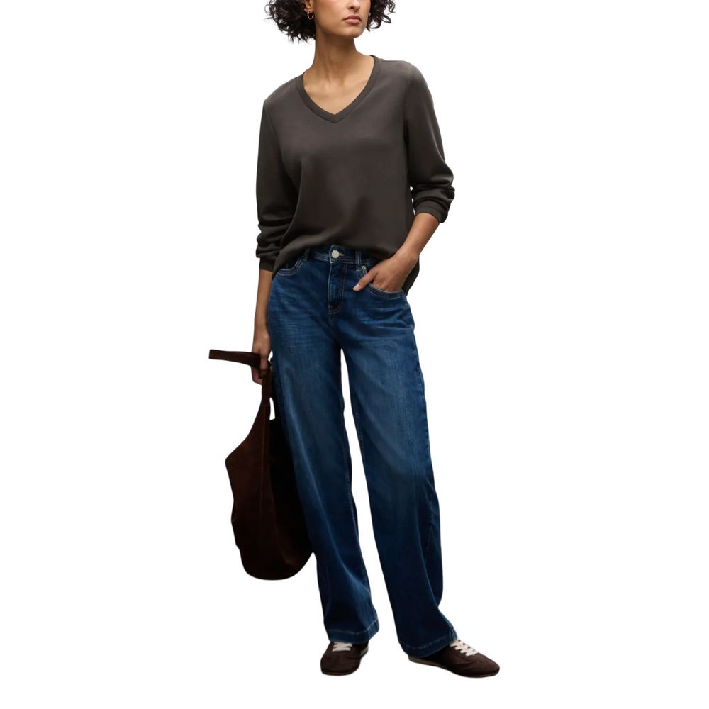 The Street One EOS_Silk look shirt 323840 is a women’s crew neck sweatshirt that combines refined style with everyday comfort. Made from a blend of 46% modal, 46% polyester, and 8% elastane/lycra, this sweatshirt features a soft, slightly stretchy fit that enhances the feminine silhouette. The silk-effect fabric adds an elegant and sophisticated touch, while the straight cut and V-neck make it versatile and easy to match with both casual and more formal outfits. The slightly wide long sleeves add a modern twist and extra comfort, making this piece perfect for any season and occasion.