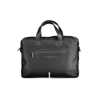 briefcase 2 handles, adjustable and removable shoulder strap, 1 external pocket, 1 lap-top compartment, 1 document pocket, 1 internal pocket, internal pen holder spaces, contrasting details, zip closure, logo