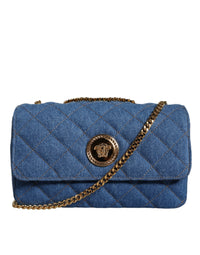 Versace Blue Quilted Denim Leather Crossbody Shoulder Bag