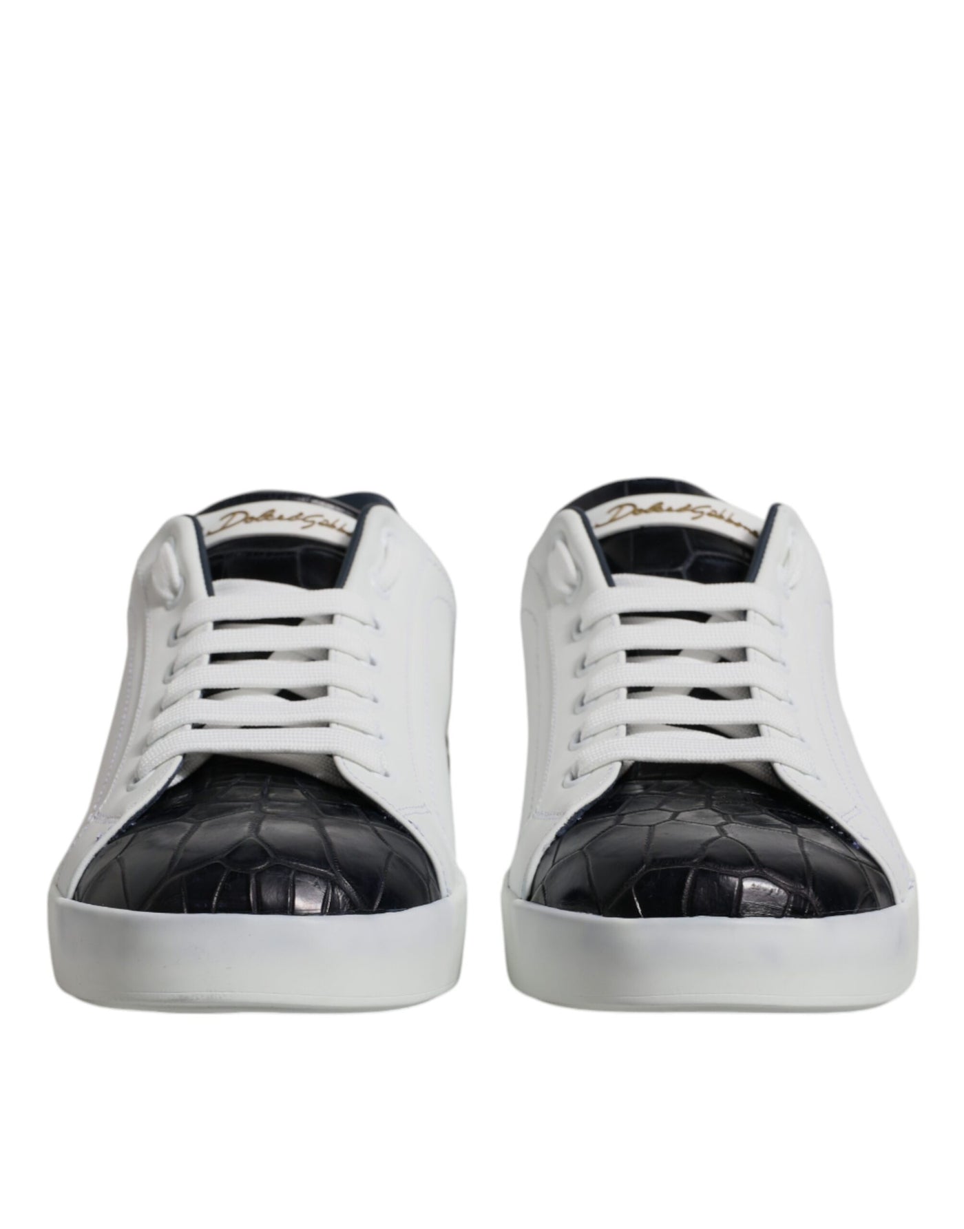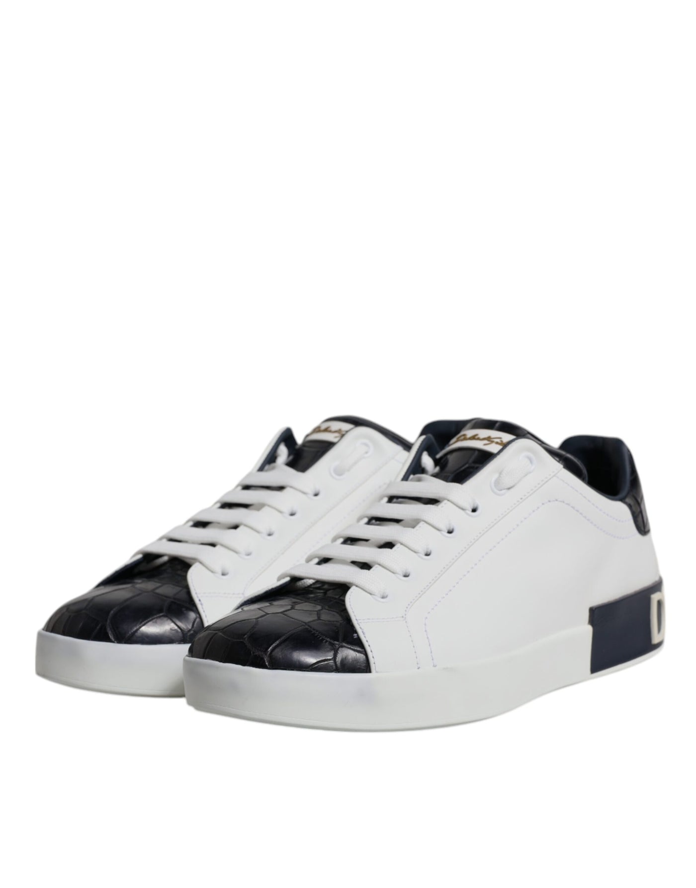 Dolce & Gabbana White Black Leather Portofino Sneakers Shoes